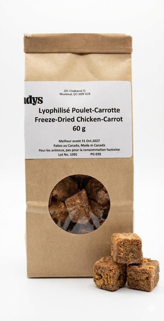 Elevate your pet's snacking experience with our premium freeze-dried Chicken Pumpkin treats, the perfect healthy option for both cats and dogs. Sourced locally in Canada, these treats are crafted from the highest quality, human-grade organ meats, including nutrient-rich liver. Each treat offers your furry friend a delicious, protein-packed snack that provides essential nutrients to support their overall health. Packaged in convenient 1 kg resealable bags, our freeze-dried Chicken Pumpkin are easy to store and serve, ensuring your pet enjoys a fresh, nutritious treat every time.